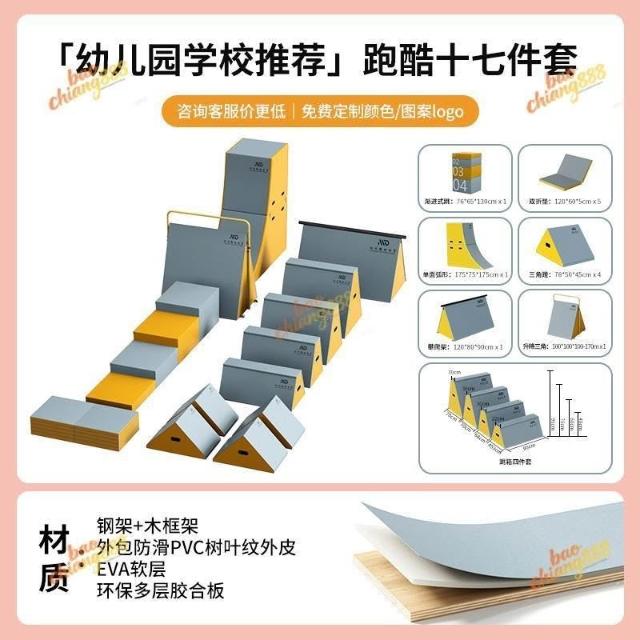 跑酷訓練器材九件套 體適能感統器材 攀爬架 教具 跑酷用擋板 木質玩具 海綿防磕碰器材 體能鍛鍊器