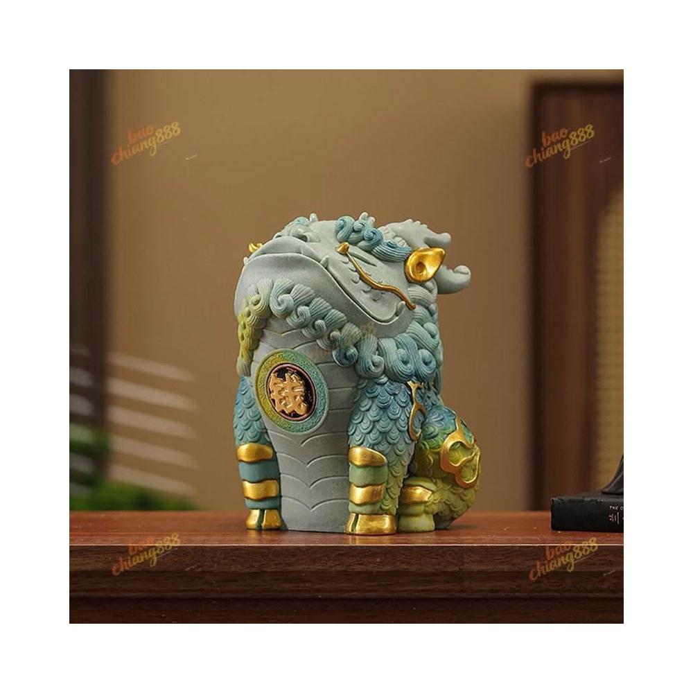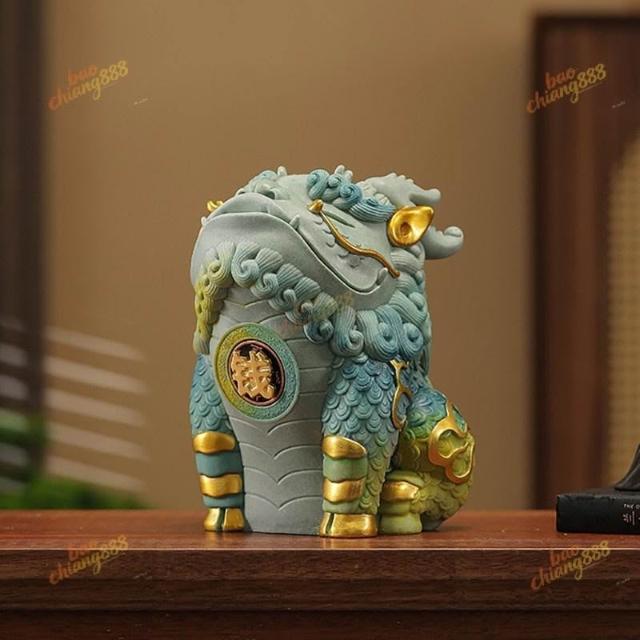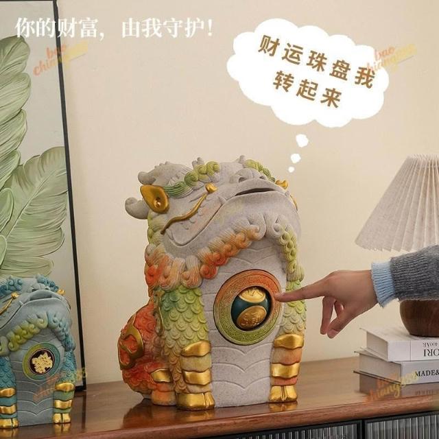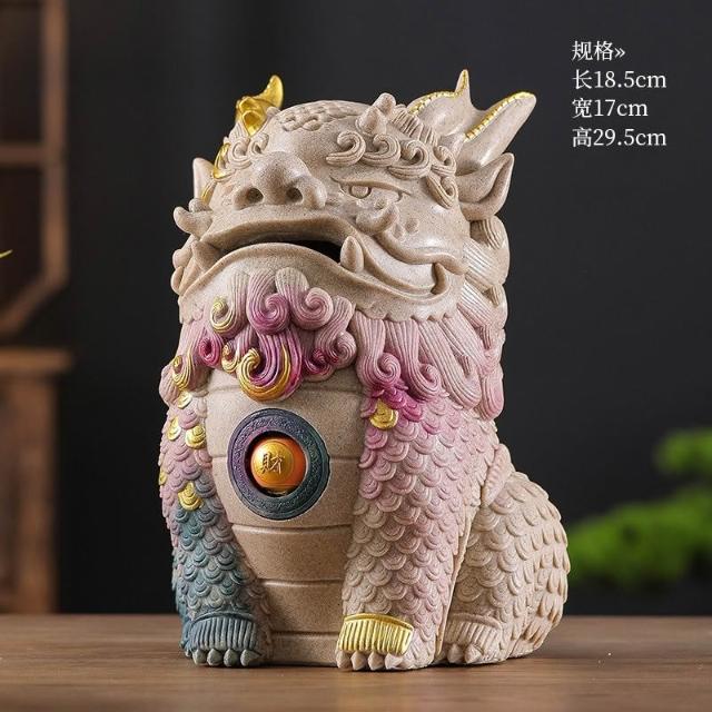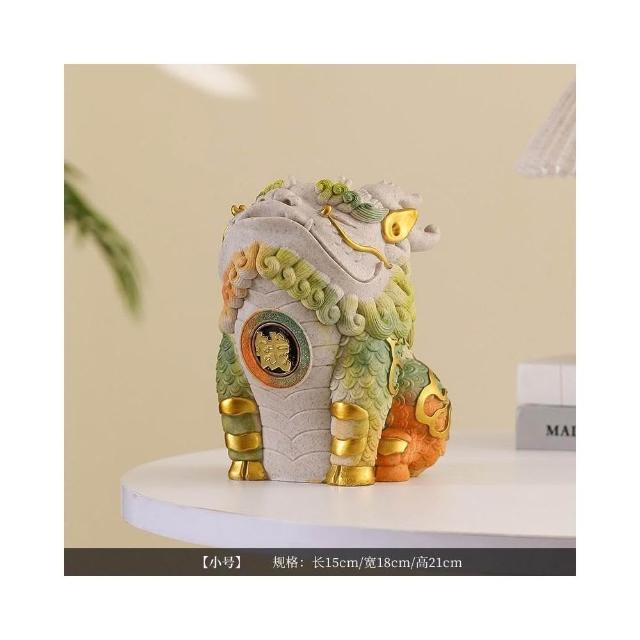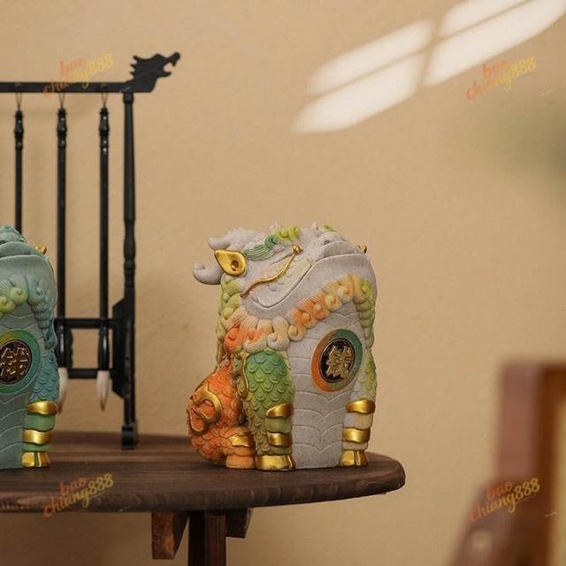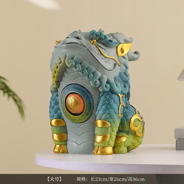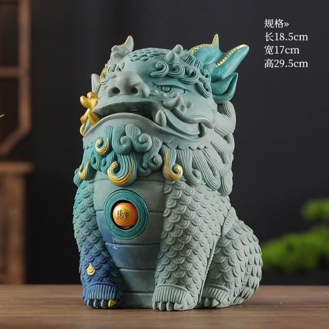 麒麟存錢罐 創意客廳茶桌面招財擺件 過年送禮貔貅祥瑞寓意 儲蓄罐 小眾精緻裝飾品 青色砂色白色 轉米