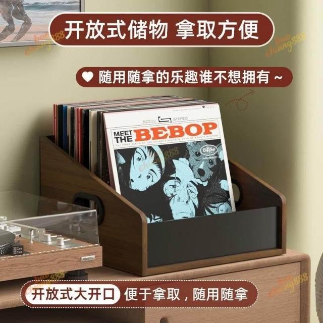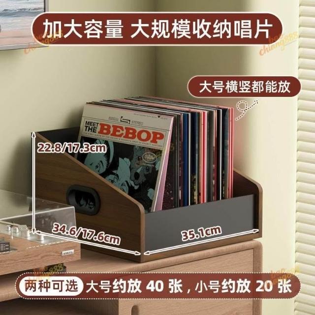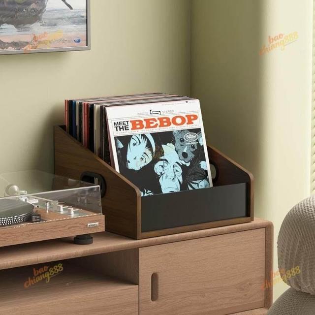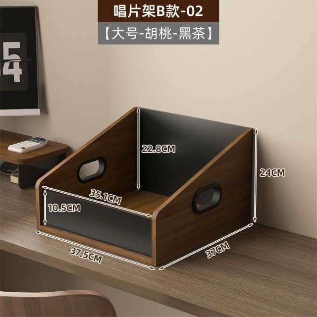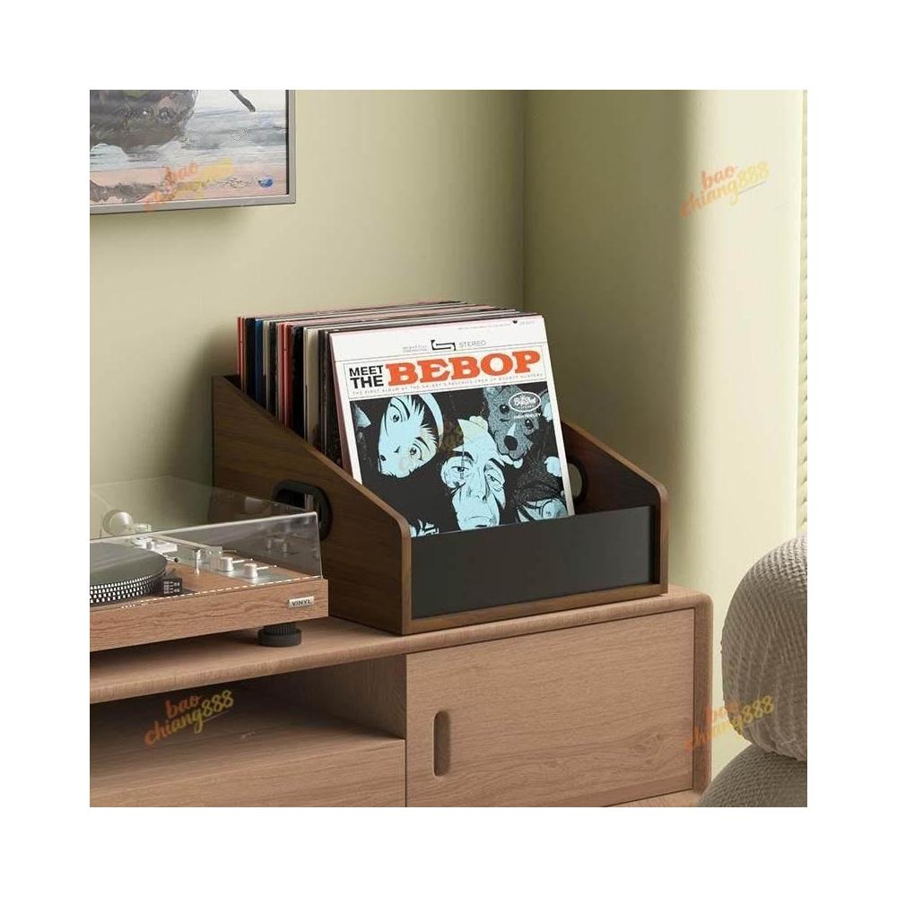 大尺寸黑膠展示架 黑胡桃唱片存放架 收納架 桌面收納筐 黑膠收納盒 客廳書房處桌上收納盒 年代感復古