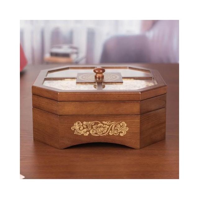 分格木盤 木託盤 糖果盒木質多層旋轉中式家用客廳分格帶蓋幹果瓜子零食點心水果盤 木質託盤 中式幹果盤