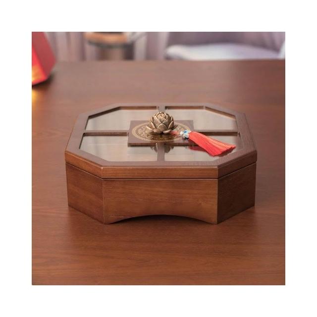 分格木盤 木託盤 糖果盒木質多層旋轉中式家用客廳分格帶蓋幹果瓜子零食點心水果盤 木質託盤 中式幹果盤