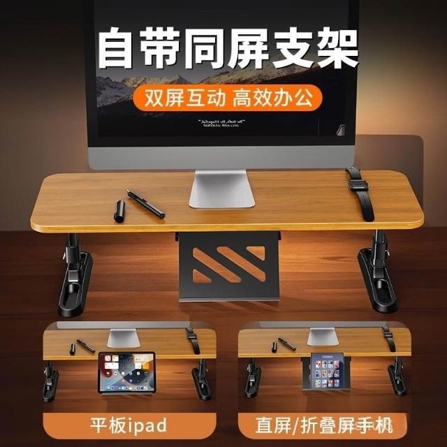 電腦增高架 顯示器支架實木可陞降顯示器增高架臺式電腦墊高臺底座帶手機架鍵盤收納架子筆電增高架 螢幕增