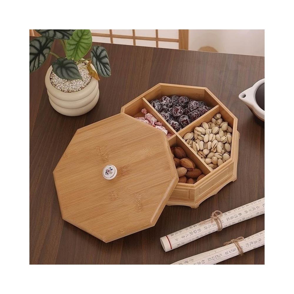 分格木盤 木託盤 中式實木分格糖果幹果盒堅果收納盒創意手提中秋月餅糕點禮品盒 木質託盤 中式幹果盤