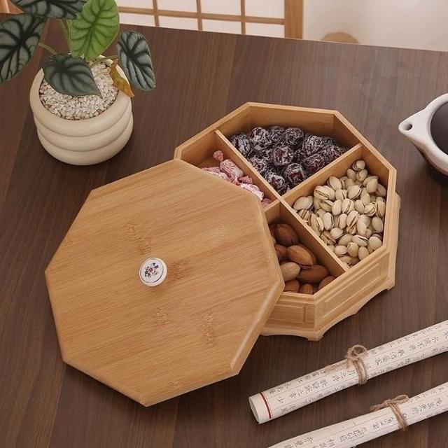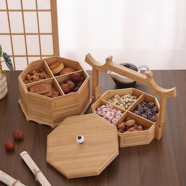 分格木盤 木託盤 中式實木分格糖果幹果盒堅果收納盒創意手提中秋月餅糕點禮品盒 木質託盤 中式幹果盤