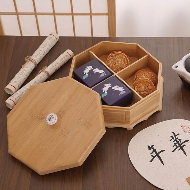 分格木盤 木託盤 中式實木分格糖果幹果盒堅果收納盒創意手提中秋月餅糕點禮品盒 木質託盤 中式幹果盤