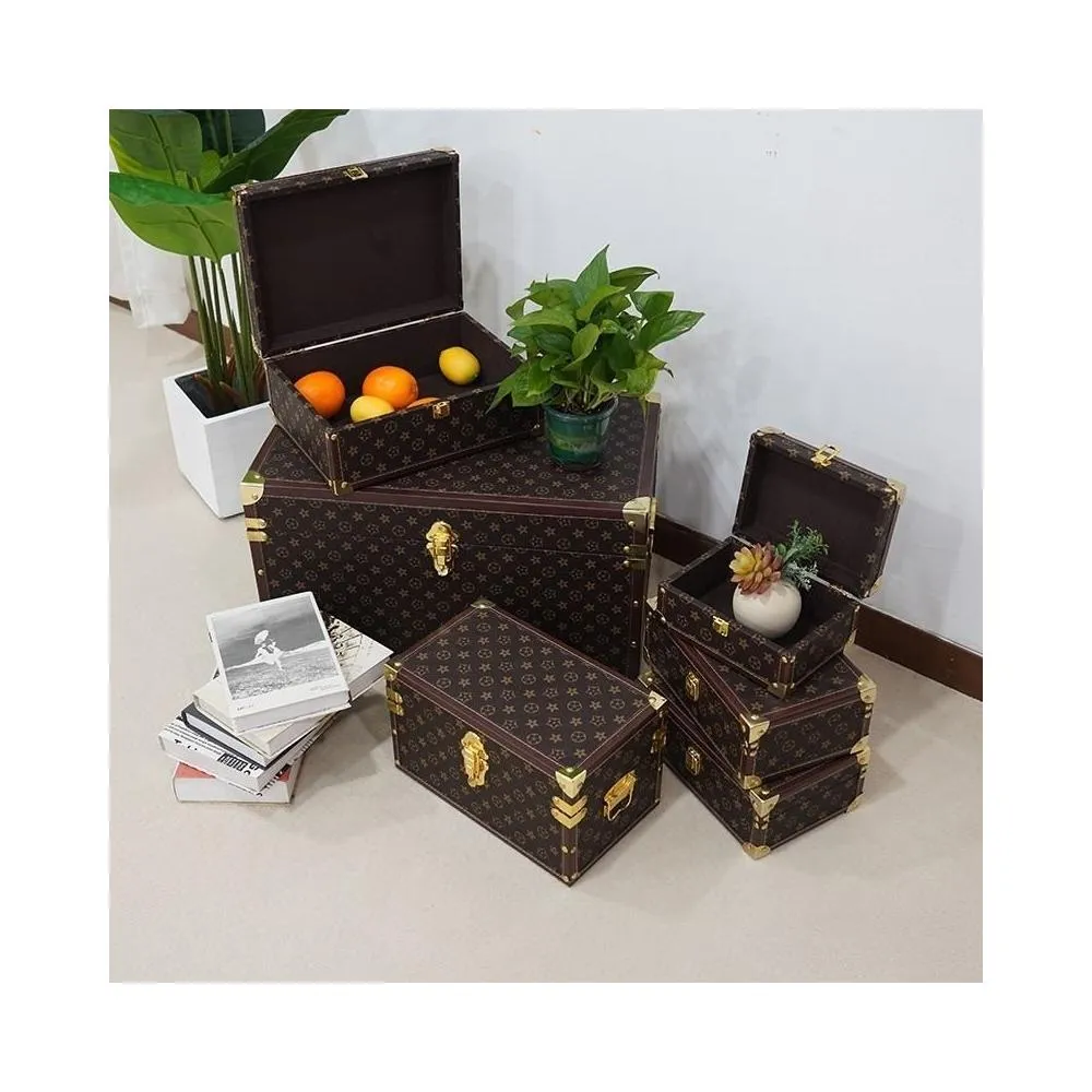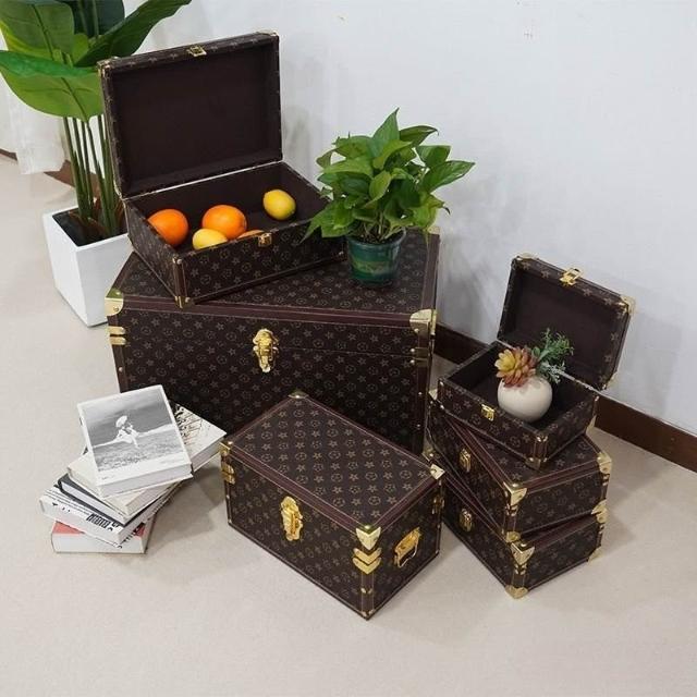 木箱 木盒 整理箱 複古風收納箱老花皮箱收納箱百寶箱櫥窗擺設道具箱帶鎖木箱 木質收納 復古收納箱 收