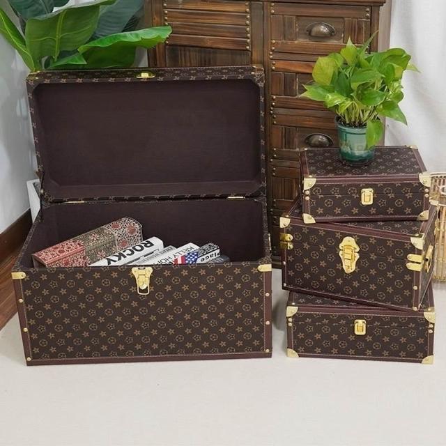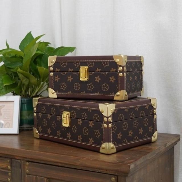 木箱 木盒 整理箱 複古風收納箱老花皮箱收納箱百寶箱櫥窗擺設道具箱帶鎖木箱 木質收納 復古收納箱 收