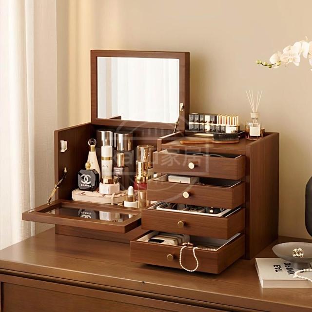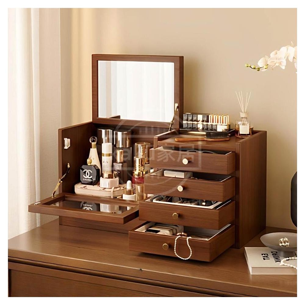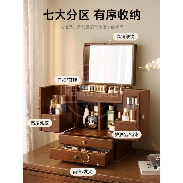 實木化妝品收納盒 桌面香水口紅置物架 梳妝檯化妝臺 大容量護膚品收納架子 梳妝台輕奢置物架 分類收納