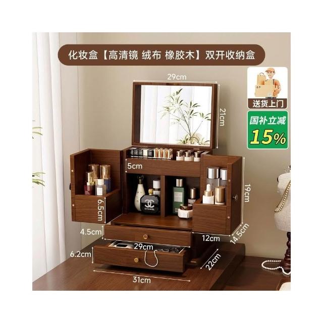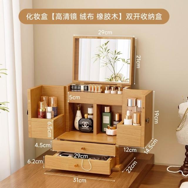 實木化妝品收納盒 桌面香水口紅置物架 梳妝檯化妝臺 大容量護膚品收納架子 梳妝台輕奢置物架 分類收納