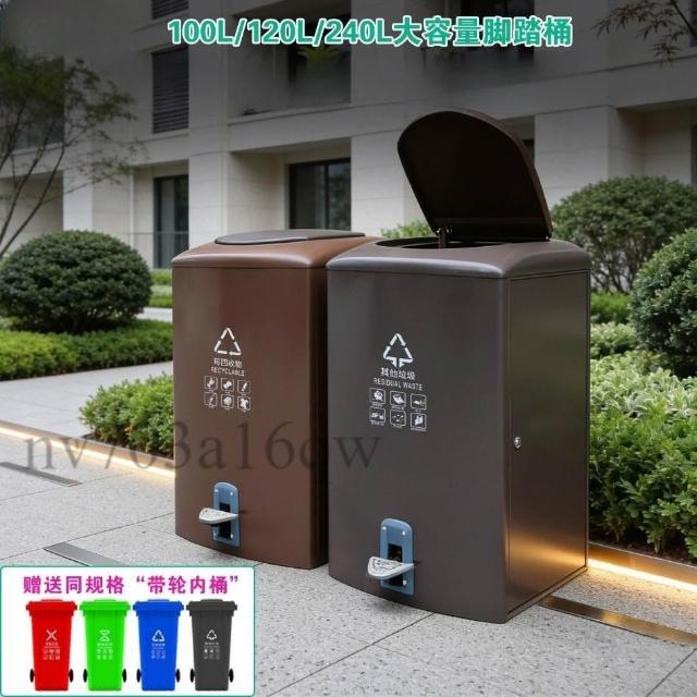 120腳踏垃圾桶戶外大碼大容量小區物業分類桶垃圾箱100商用室外 戶外垃圾桶 大型垃圾桶 分類垃圾桶