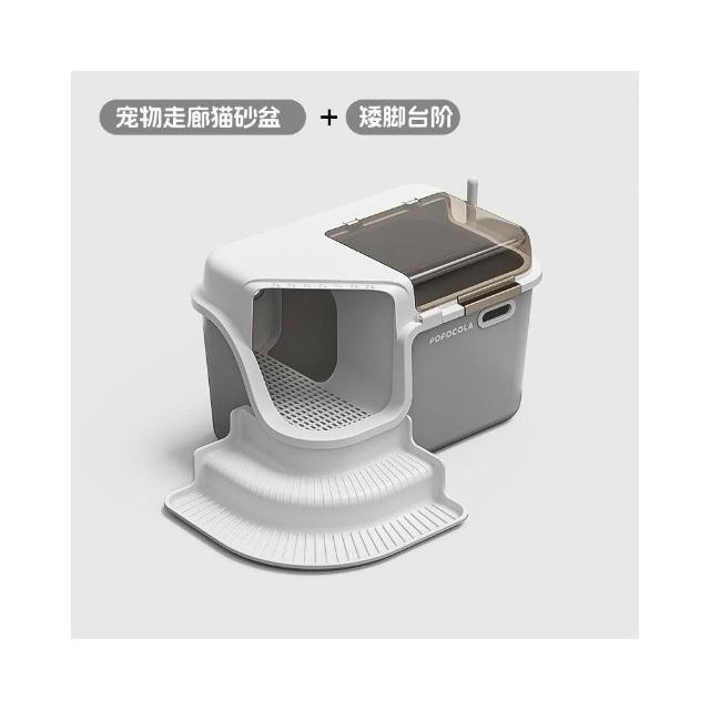 走廊式猫砂盆 超大號全封閉防臭猫砂盆 帶通道防外濺回廊防帶砂猫厕所 特大猫廁所 帶階梯防濺沙 胖貓貓