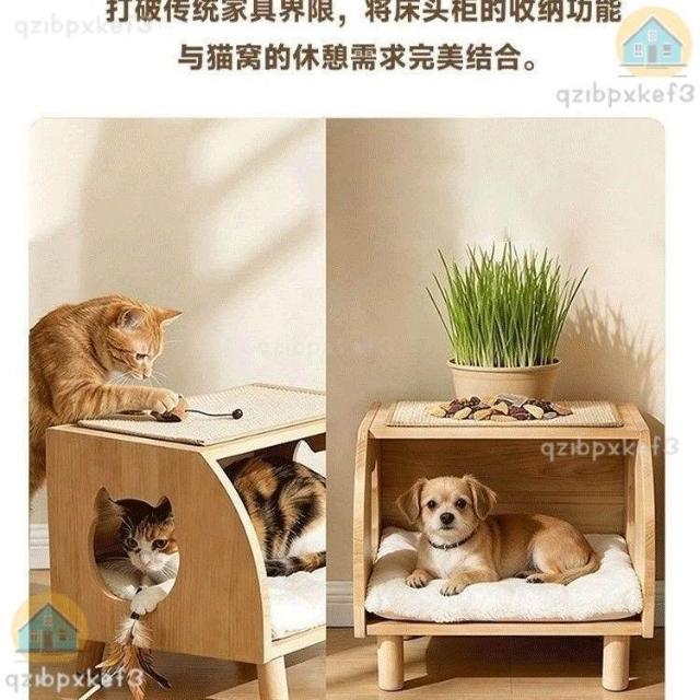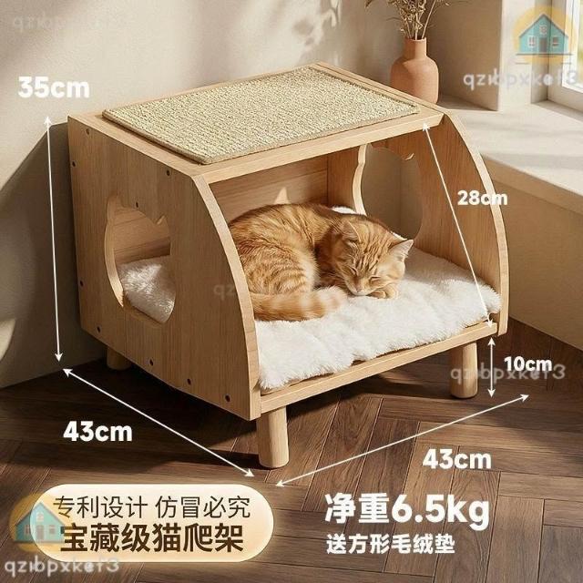 實木狗窩 寵物貓窩 四季通用 劍麻安全感狗狗房子 小型犬狗屋 貓抓板 寵物床 寵物睡袋 寵物家具 寵