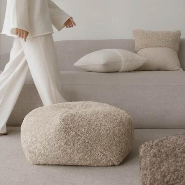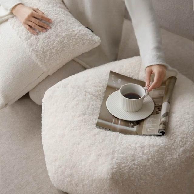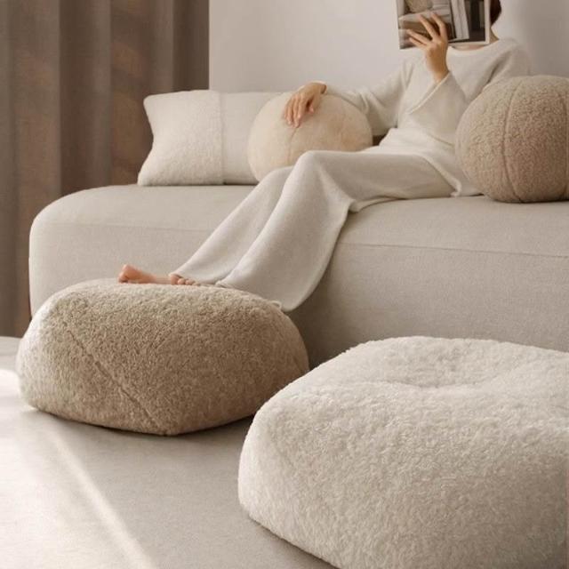 軟糯羊羔絨蒲團侘寂風客廳坐墩慵懶米白色懶人沙發抱枕靠