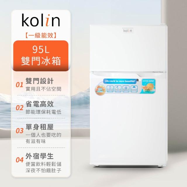 Kolin 歌林95公升一級能效定頻雙門小冰箱 雪亮白/一鍵除霜KR-SE20952(全新福利品)