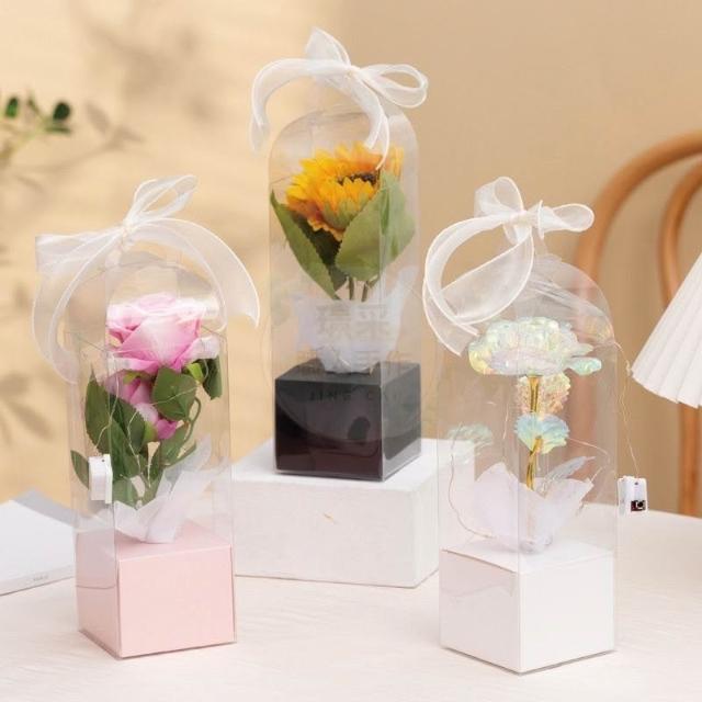 璟采職人燈塔盒 韓式花盒 單支花盒 透明花盒 花束盒包裝盒 乾燥花盒 透明盒 捧花盒 鮮花盒 禮物盒 透明小花盒