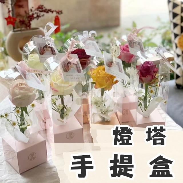 璟采職人燈塔盒 韓式花盒 單支花盒 透明花盒 花束盒包裝盒 乾燥花盒 透明盒 捧花盒 鮮花盒 禮物盒 透明小花盒