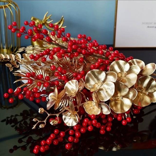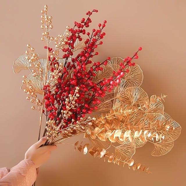 璟采職人仿真新年花 插花 金色花 新年布置 仿真花 新年葉材 春節花飾 插花裝飾 春節裝飾 仿真花 假花 新年招財