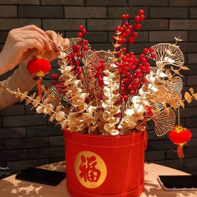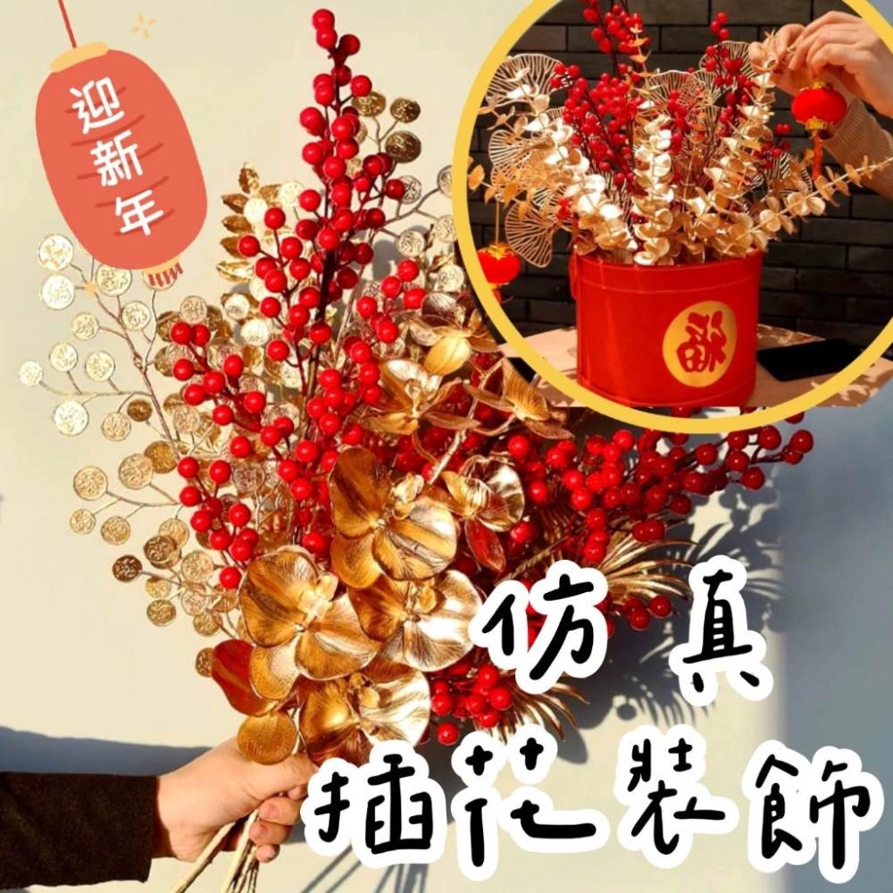 璟采職人仿真新年花 插花 金色花 新年布置 仿真花 新年葉材 春節花飾 插花裝飾 春節裝飾 仿真花 假花 新年招財