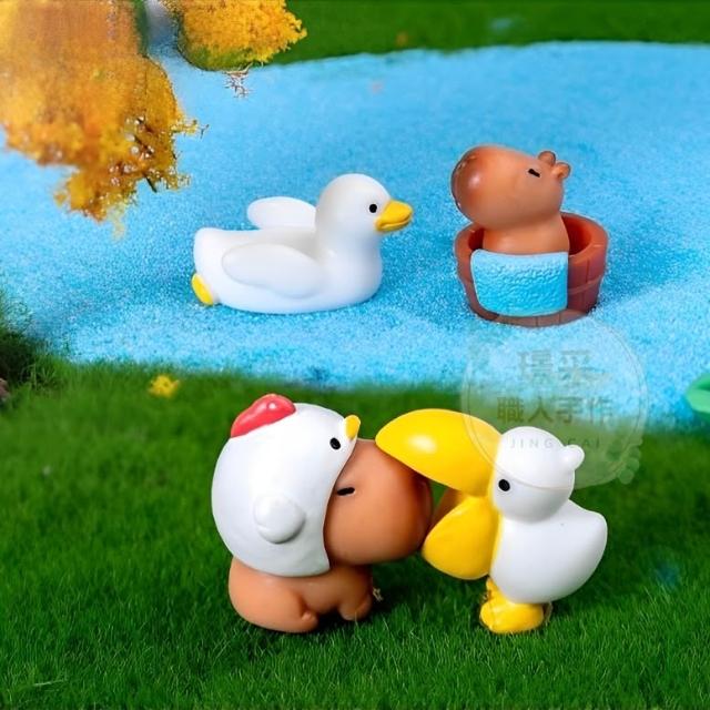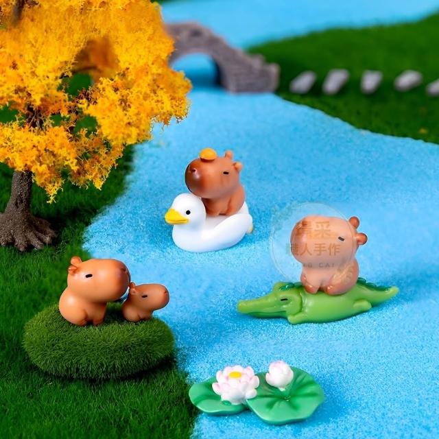 璟采職人水豚君微景觀 卡皮巴拉擺件 辦公桌 多肉 盆栽 場景佈置 可愛水豚君 水豚小夥伴 桌面小擺件裝飾品創意擺件