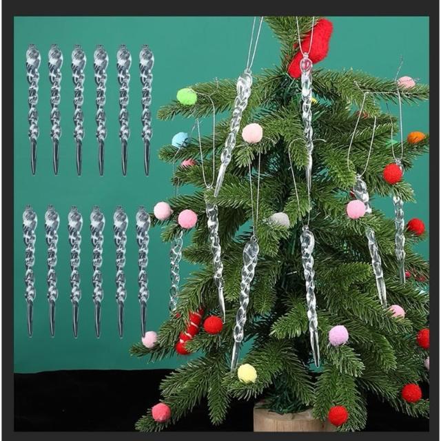 璟采職人12個聖誕冰錐 聖誕透明冰條 聖誕樹裝飾品 PVC透明冰條掛件 螺紋冰柱 聖誕樹掛飾冰錐弔飾 聖誕節裝飾品