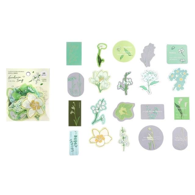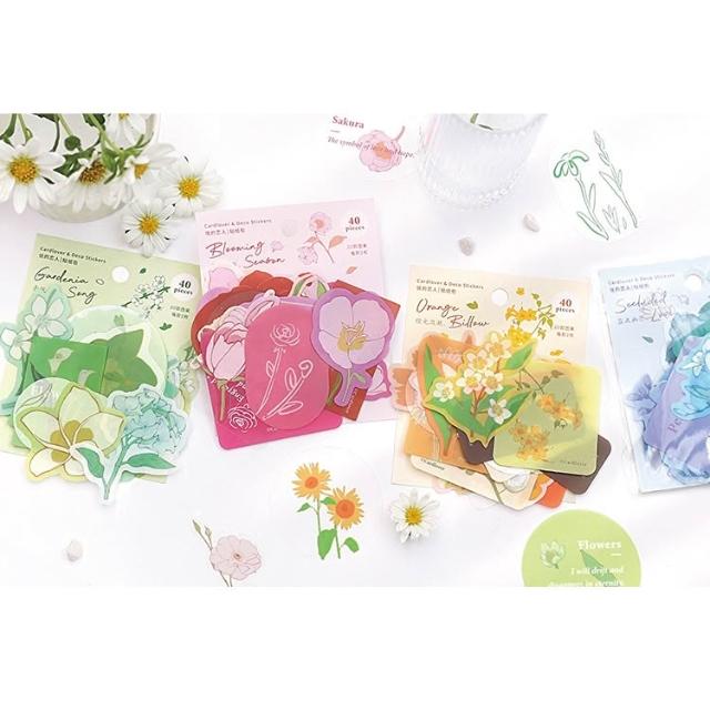 德德小品集花期如夢 貼紙包 4款 裝飾 手帳 封口 可愛青梔子歌 橙光瀲灩 赤鳶花事 藍波幽戀 怪獸 愛心 花朵 四季 PVC防水