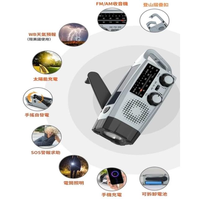 台灣現貨 應急電源 XLN-383 手搖發電 太陽能充電 LED手電筒 應急收音機 防災必備 SOS警報 多功能收音機