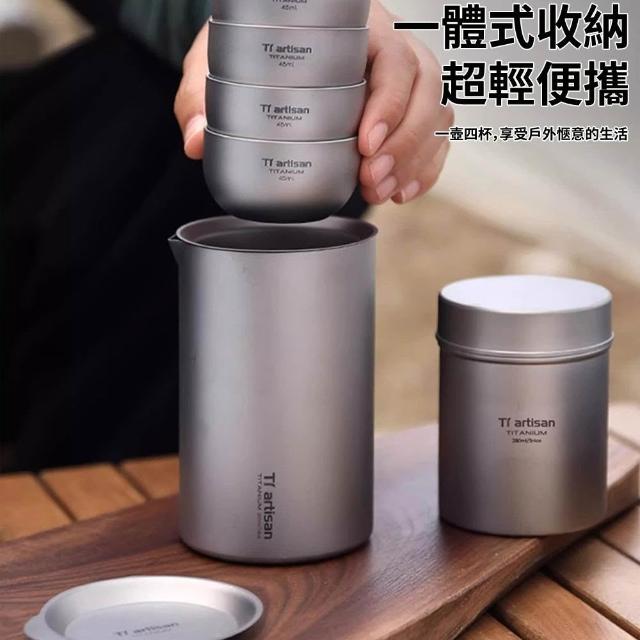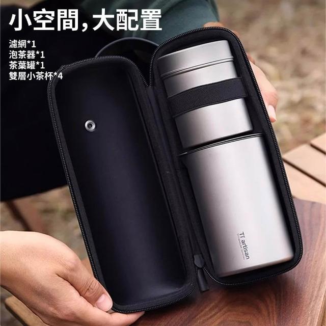 芯毅 快客杯 純鈦泡茶旅行套裝 雙層泡茶杯 露營鈦杯 外出茶具組 茶水分離杯 鷹嘴泡茶器/茶葉罐 附收納包