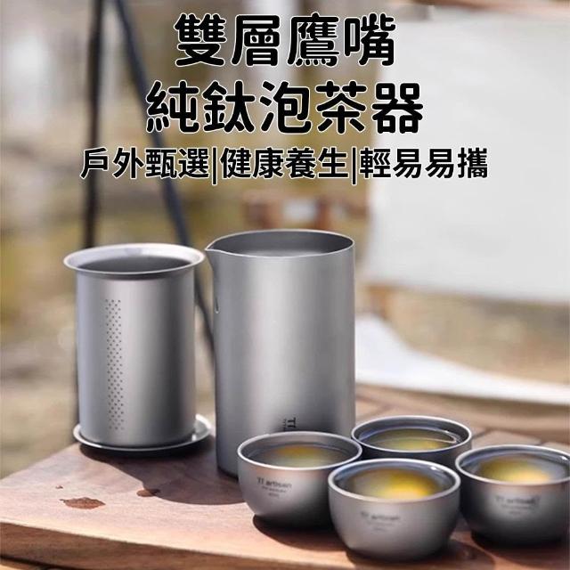 芯毅 快客杯 純鈦泡茶旅行套裝 雙層泡茶杯 露營鈦杯 外出茶具組 茶水分離杯 鷹嘴泡茶器/茶葉罐 附收納包