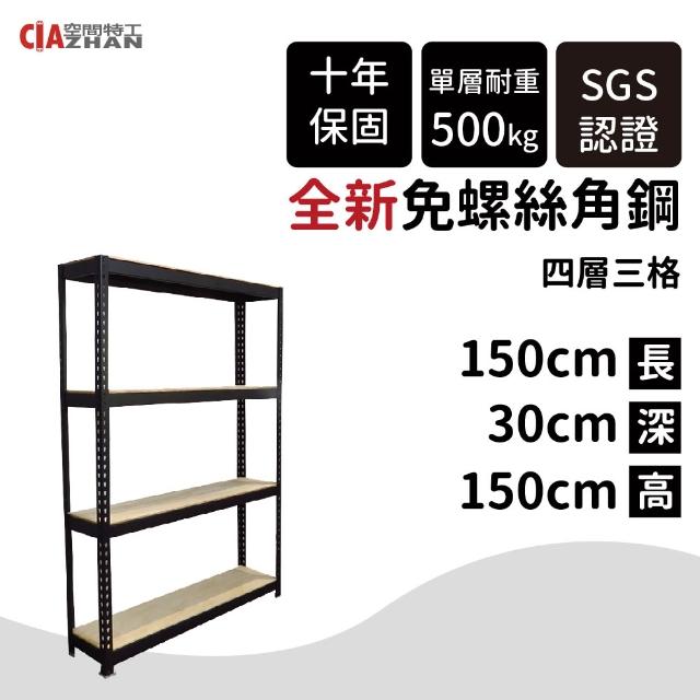 空間特工工業風免螺絲四層角鋼架 2色30x150x150cm置物架/電器櫃/倉儲架/鐵架/耐重層架/書架