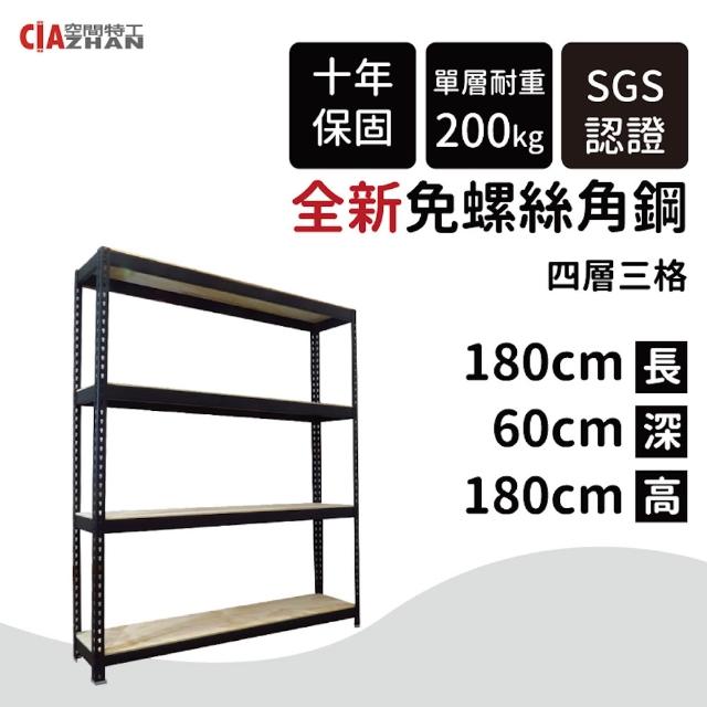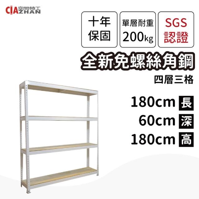 空間特工免螺絲耐重角鋼層架 2色 180x60x180cm 四層收納置物櫃 倉儲貨架 公仔展示架 DIY組合架 工業風鐵架