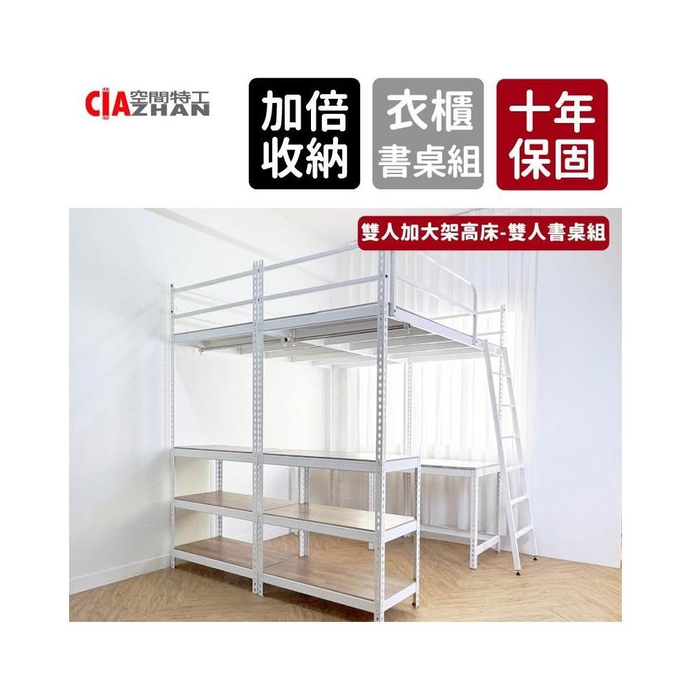 空間特工 雙人加大架高床雙人書桌組 十年保固 高架床 雙人床架 床架組 床鋪 雙層鐵架床 上床下桌 訂製床架 宿舍床