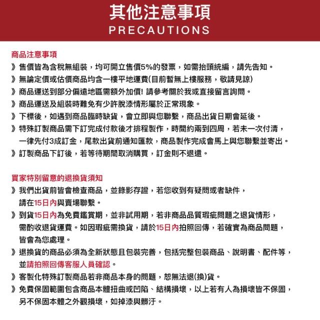 - 特殊地區配送困難(如山區/百貨/大賣場/機場/公家機關/學校單位/醫院/港口碼頭/軍營……等),配送時間較不定且無法指定到點或無法配送,再請事先詢問確認。 ❶【北部 加價區】 桃|竹|苗 加價200元 平溪、雙溪、貢鄉、石門、復興、五峰、尖石、泰安、北投、八里、陽明山、土城、淡水 ❷【中部 加價區】中|彰|投 南投地區全區均須加價200元 台中和平「均需加價」,請再「洽詢客服人員」確認運送價格。 ❸【南部 加價區】雲|嘉|南|高|屏 加價150元 番路、梅山、竹崎、白河、左鎮、玉井、楠西、南化、龍崎、杉林、內門、甲仙、六龜、茂林、桃源、大內、田寮、旗山、美濃、三地門、霧台、恆春、竹田、來義、泰武、獅子、春日、滿洲、牡丹 ❹【東部 加價區】宜|花|東 全皆屬加價地區均需加價300元 ❺【金門|澎湖|小琉球 加價區】 金門、澎湖、小琉球「均需加價」,請再「洽詢客服人員」運送價格。 以上地區可能因貨運或商品特殊無法寄送,本公司保有最終出貨之權利。由於貨運認定的加價地區區分的非常精細,恕難全部列舉,如遇非上述地區,但屬加價地區的路段,仍須收取貨運公司加收的額外派送費用,還請見諒!