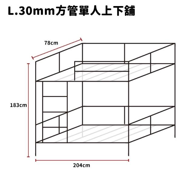 30mm黑色方管單人上下舖|福利品【出清優惠】方管床 鐵床 上下舖 鐵製床架 高腳床 台灣製造