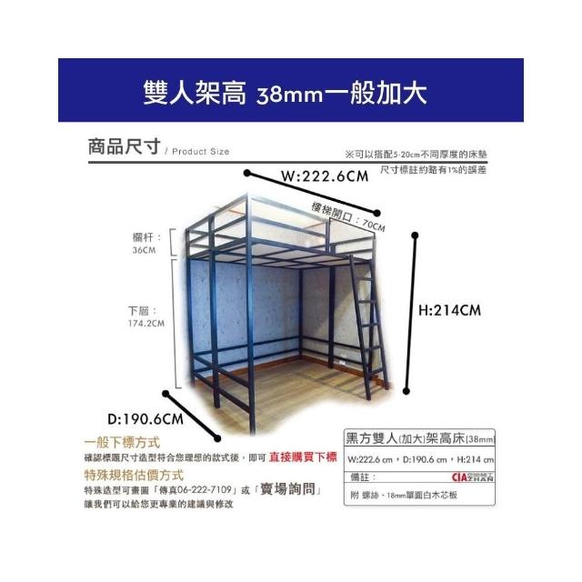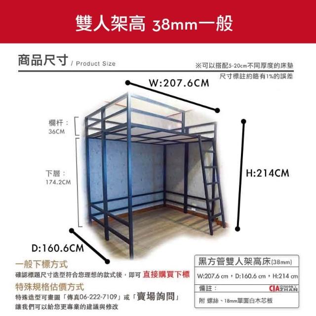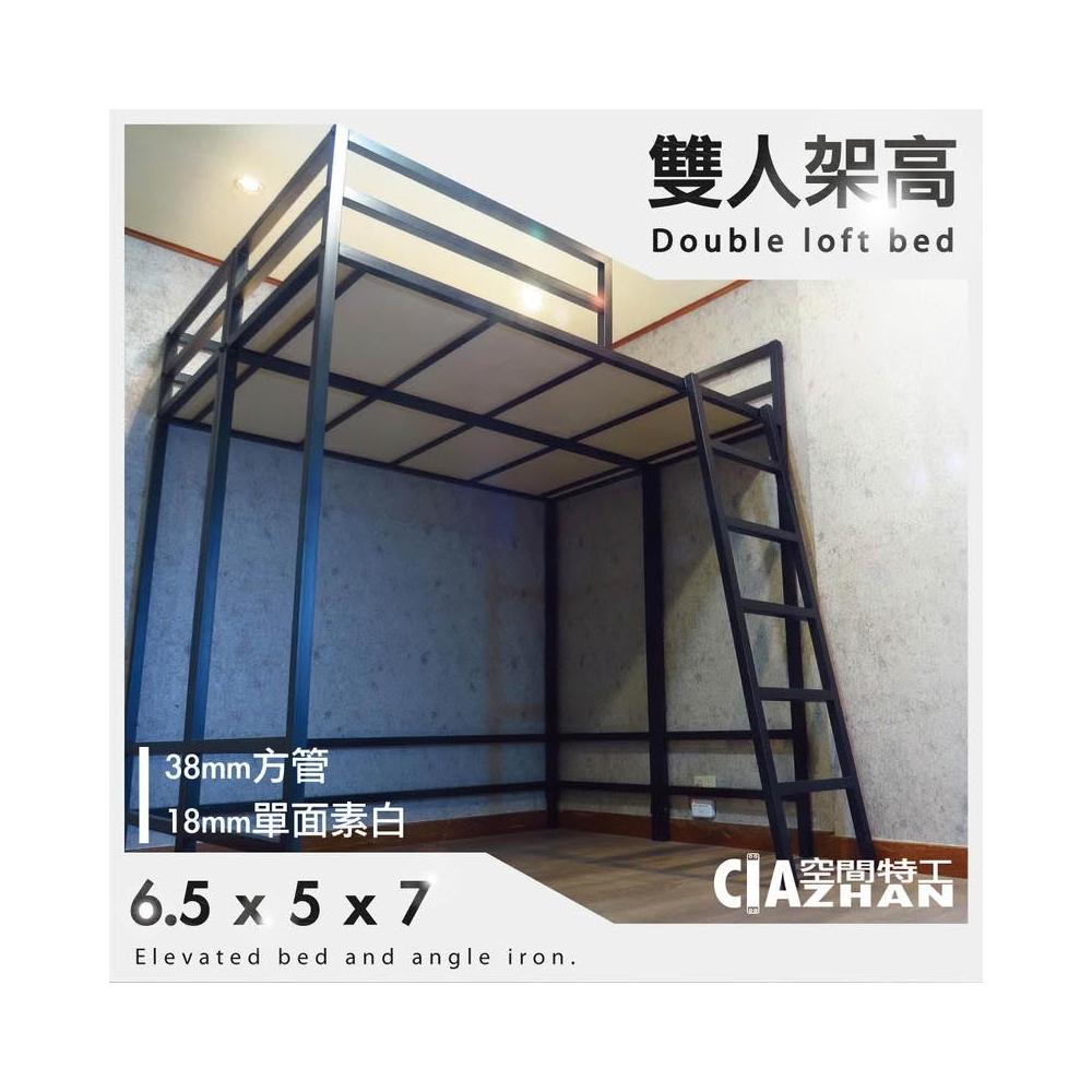 鐵管雙人架高床【台灣製造高架床|鐵床架|加大床架|雙層床架|組合床架|高腳床架|5尺雙人床|工業風床架