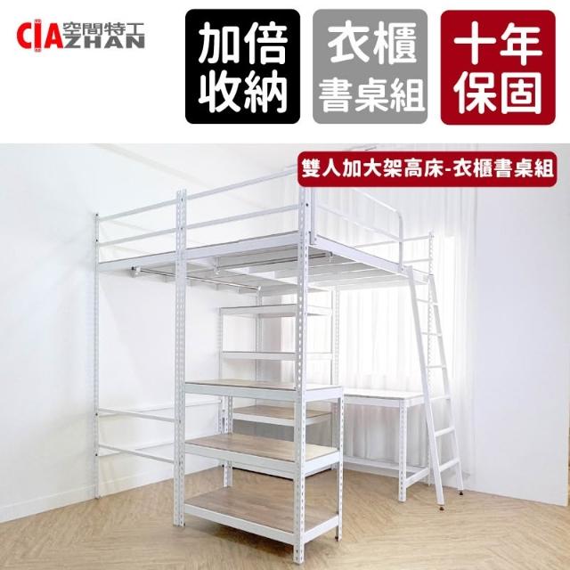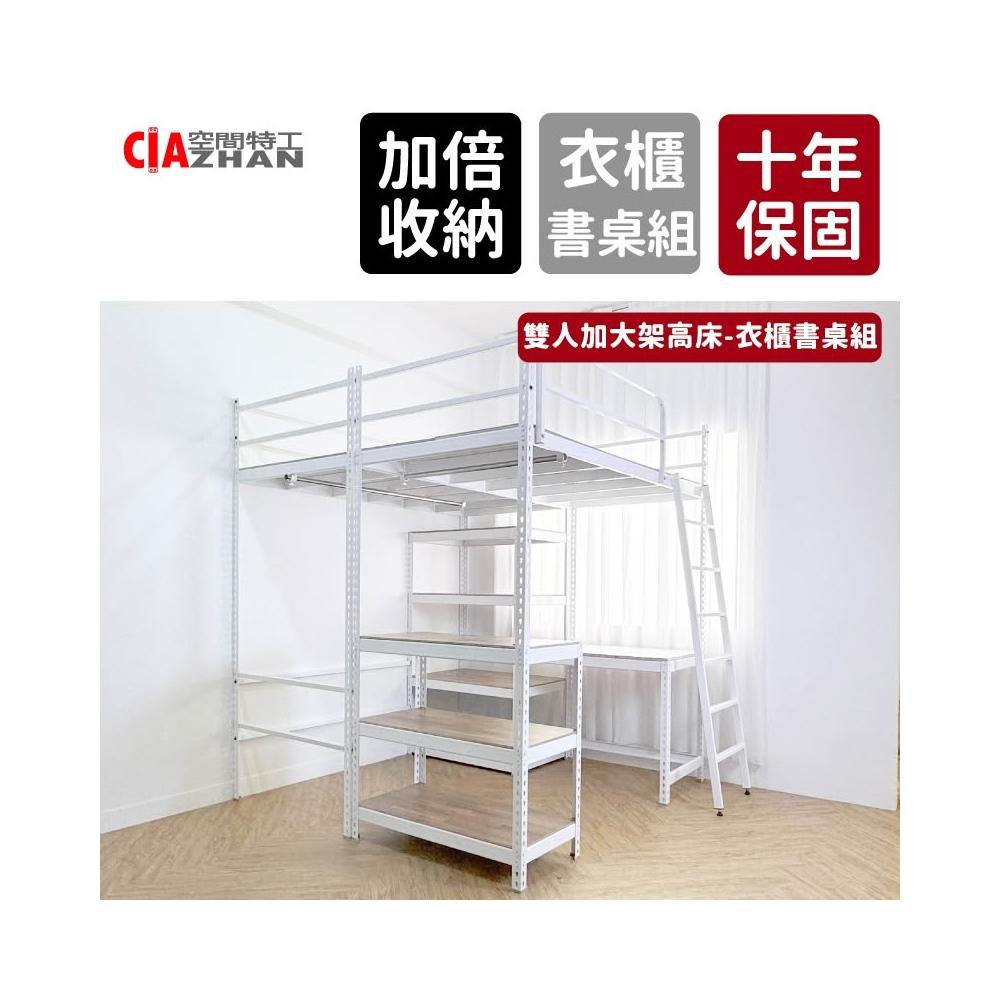 雙人加大架高床|衣櫃書桌組【十年保固】雙人床 床鋪 高架床 架高床 高腳床 床架 鐵床 床架桌 DIY床架