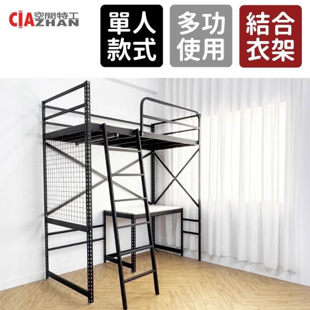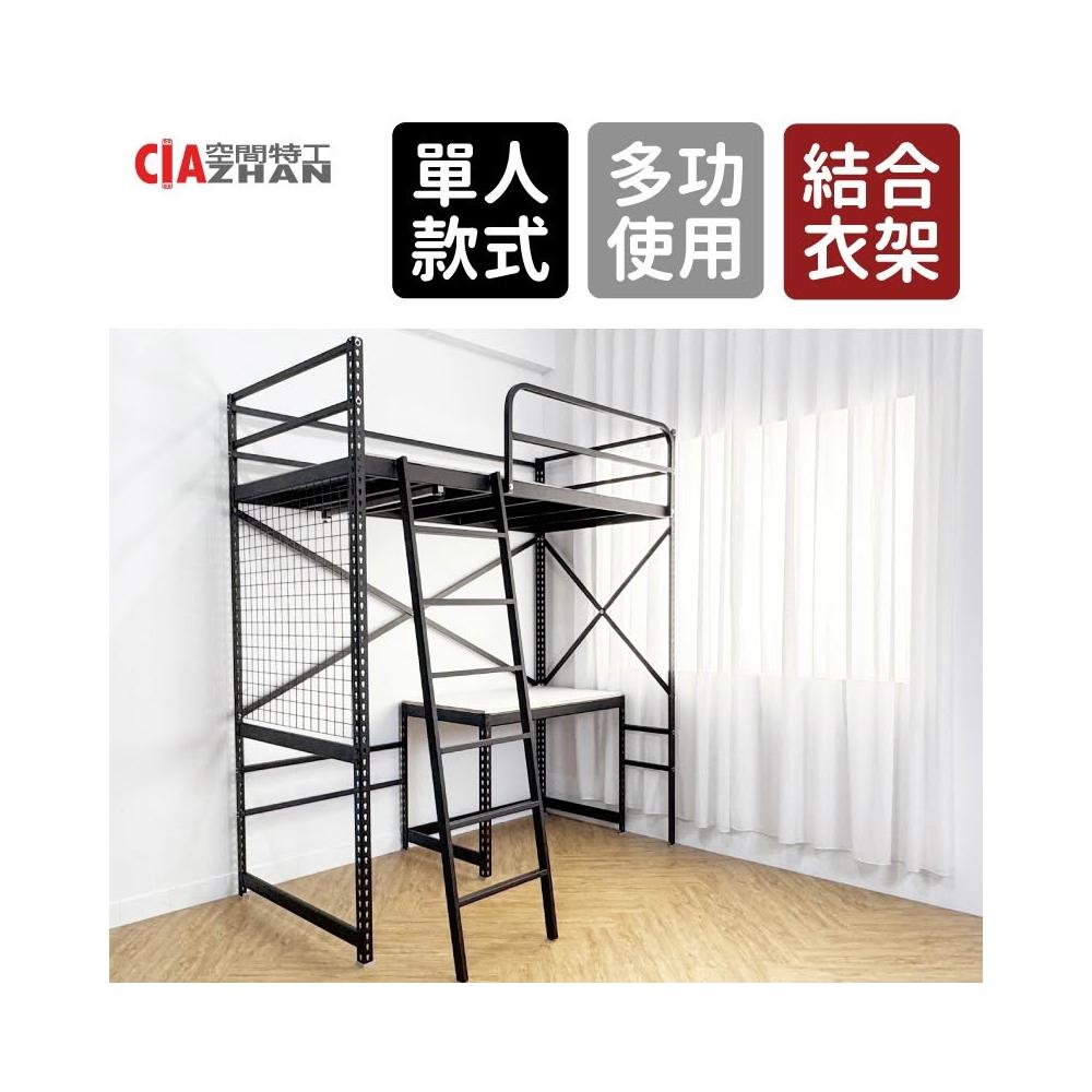 單人床架桌衣架組【台灣製造】架高床 書桌床 雙層床 上下舖 高腳床 吊衣架 鐵架床 樓梯床 子母床