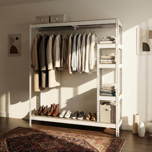 空間特工開放式吊衣櫃 90x30x180 附吊衣桿|免螺絲角鋼衣櫥架 耐重收納架 組合式衣櫃 衣帽架 落地掛衣架 台灣製造