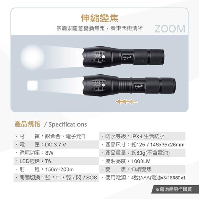 E-books F4 五段調光LED變焦手電筒 #地震頻繁 #緊急逃生