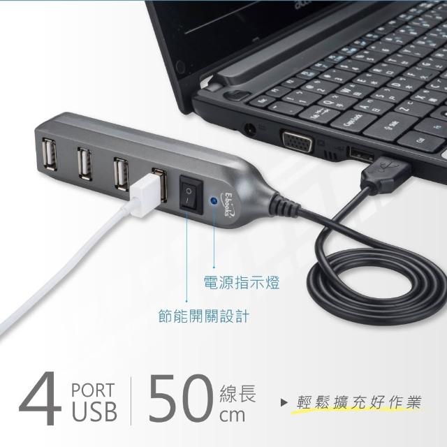 E-books H17 節能開關4孔USB-Hub集線器贈Type C轉接頭