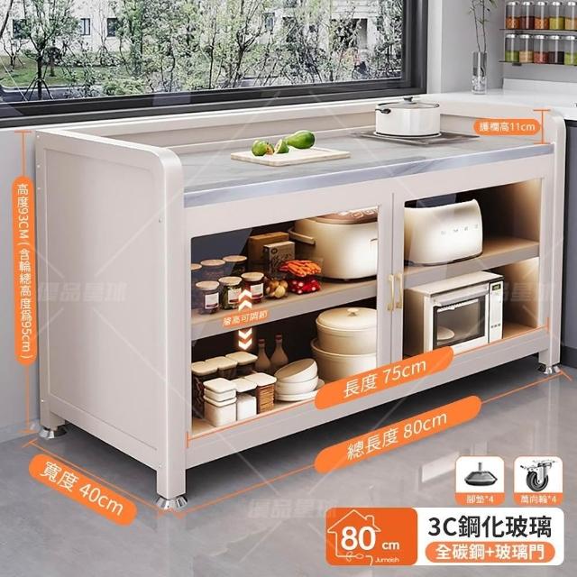 優品星球岩板三層對開門餐廚櫃 80公分 加高護欄款 (餐櫃 電器櫃 餐邊櫃 中島櫃 廚房櫃 置物櫃 收納櫃)
