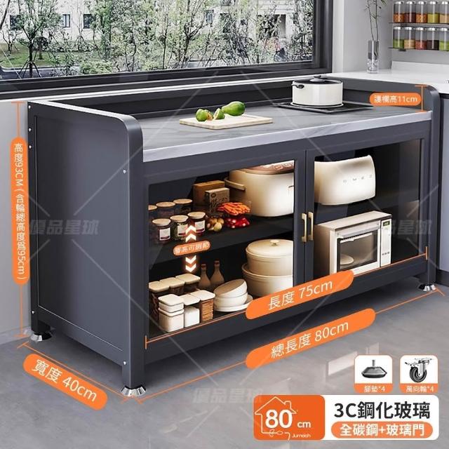 優品星球岩板三層對開門餐廚櫃 80公分 加高護欄款 (餐櫃 電器櫃 餐邊櫃 中島櫃 廚房櫃 置物櫃 收納櫃)