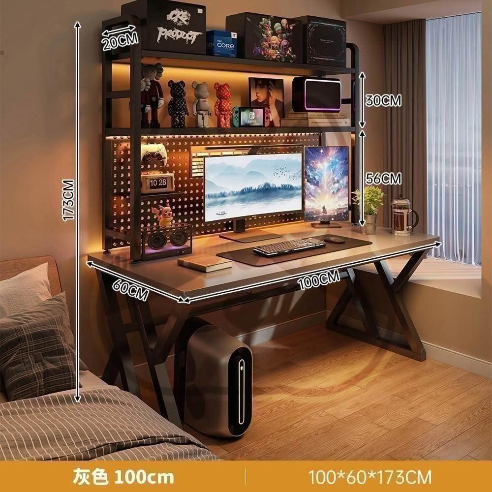 優品星球電腦桌家用電競桌椅臥室簡易桌子工作化妝台實木書桌辦公桌 勁帥灰