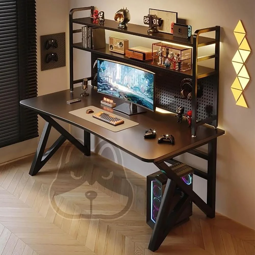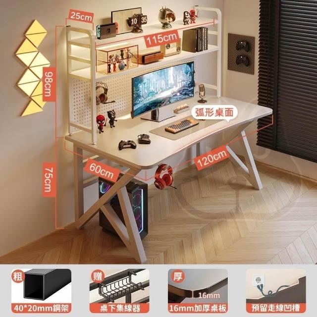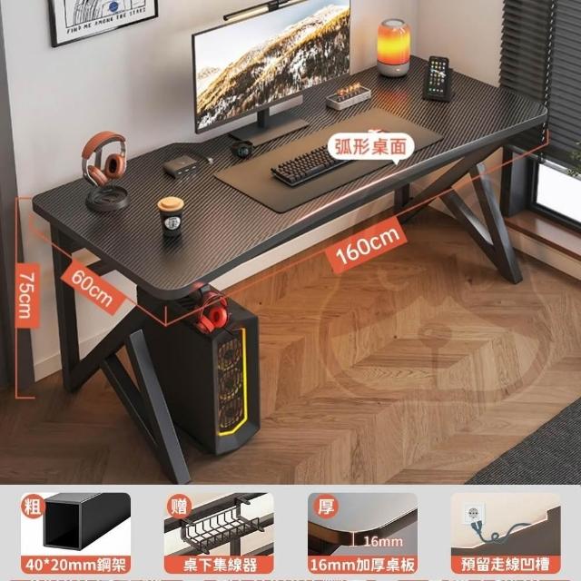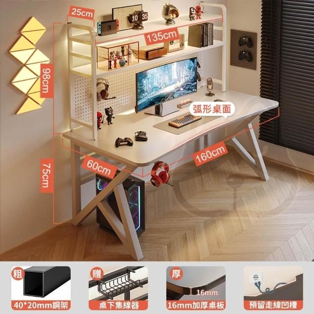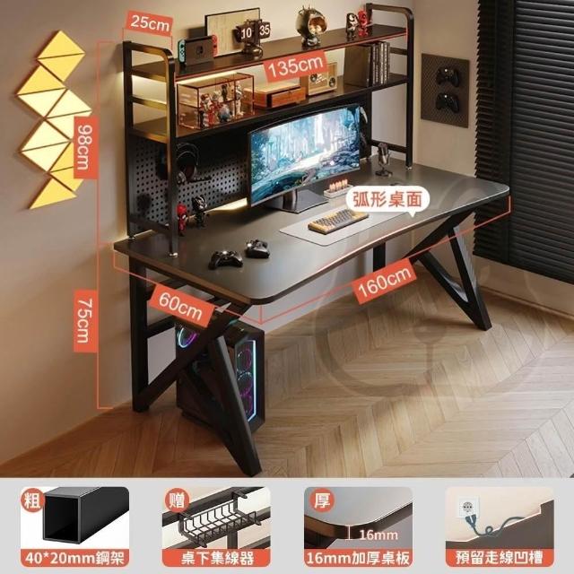 優品星球洞洞板電競桌電腦桌學習桌椅家用辦公桌書桌書架一體桌子 碳纖黑 160CM/140CM/120CM