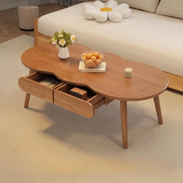 優品星球實木茶几⭐客廳家用新款小戶型實木大桌子原木奶油風雲朵小茶几桌