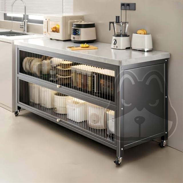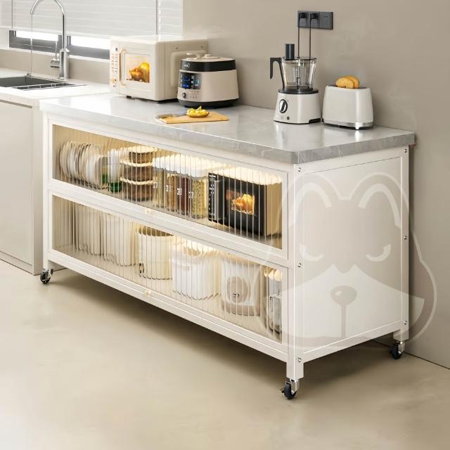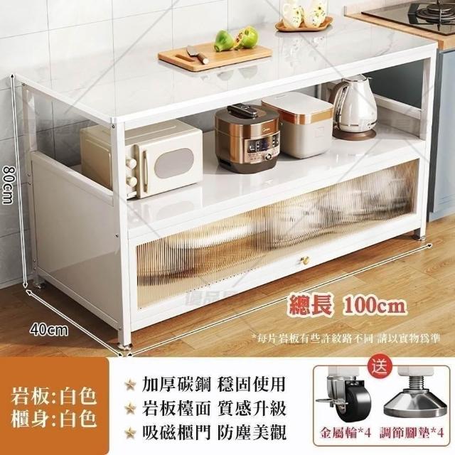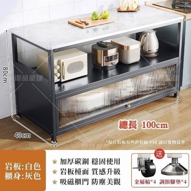 優品星球岩板廚房置物櫃多層收納餐櫃多功能微波爐中島儲物櫃 加高款