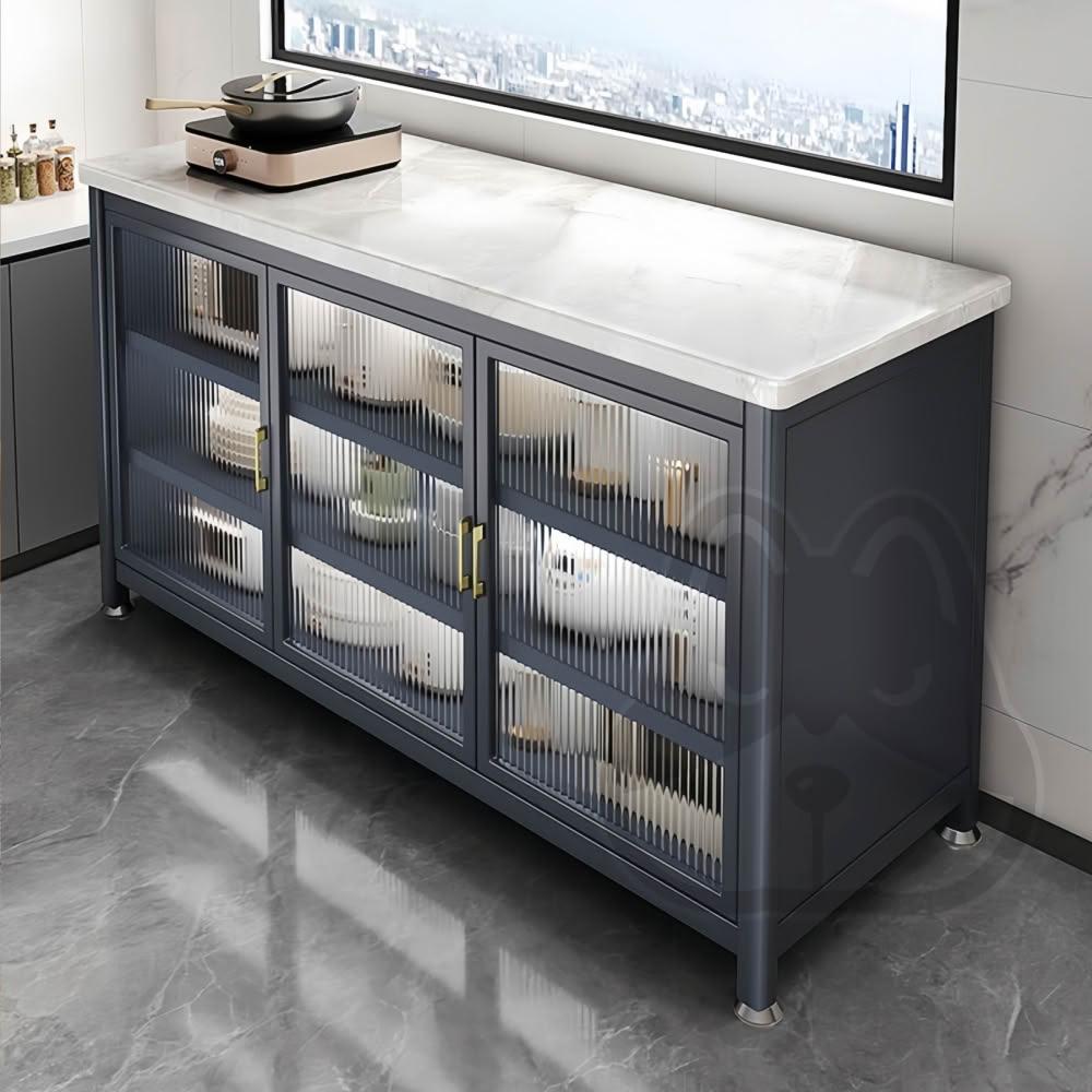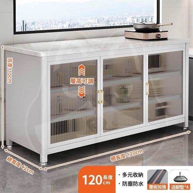 優品星球岩板廚房收納餐櫃 120CM/100CM/80CM 置物櫃多層多功能微波爐電器櫃 白色 灰色 A-485S