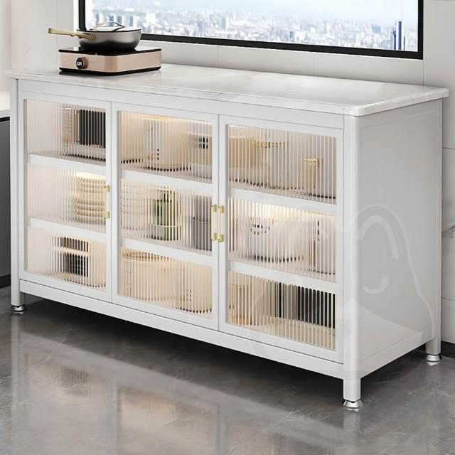 優品星球岩板廚房收納餐櫃 120CM/100CM/80CM 置物櫃多層多功能微波爐電器櫃 白色 灰色 A-485S