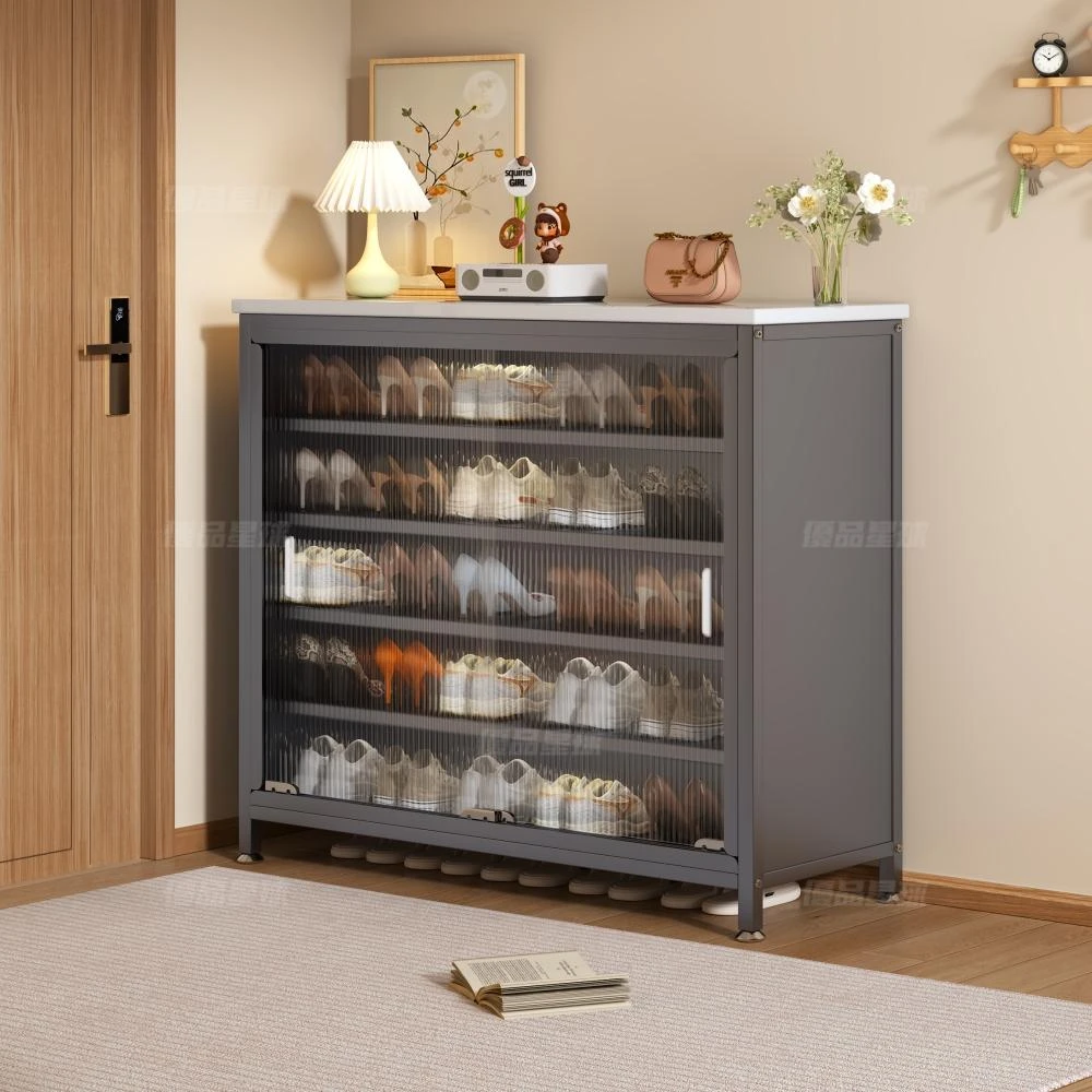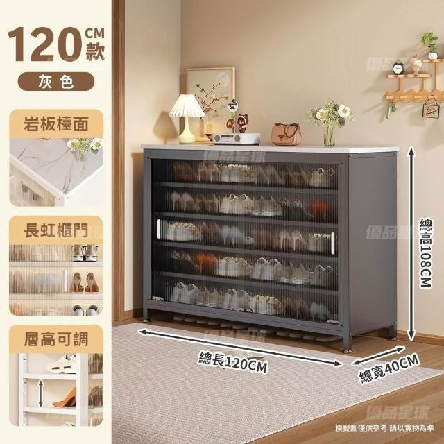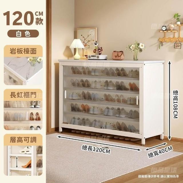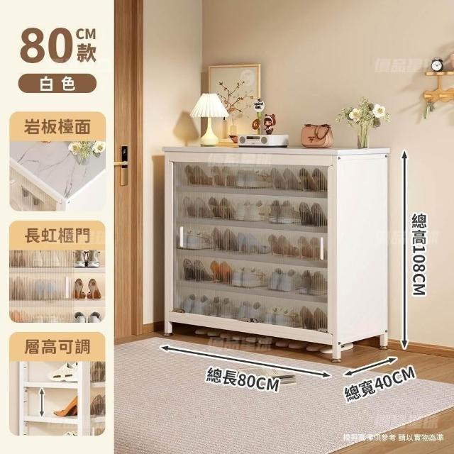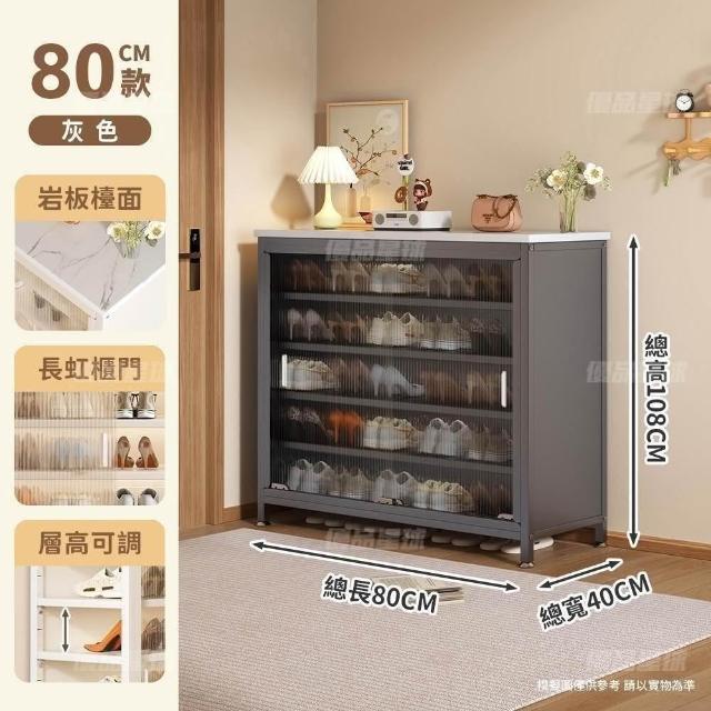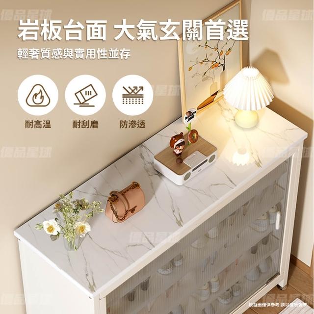 優品星球推拉門岩板台面鋼製鞋櫃金屬收納櫃 80CM 白色 灰色 B-525S