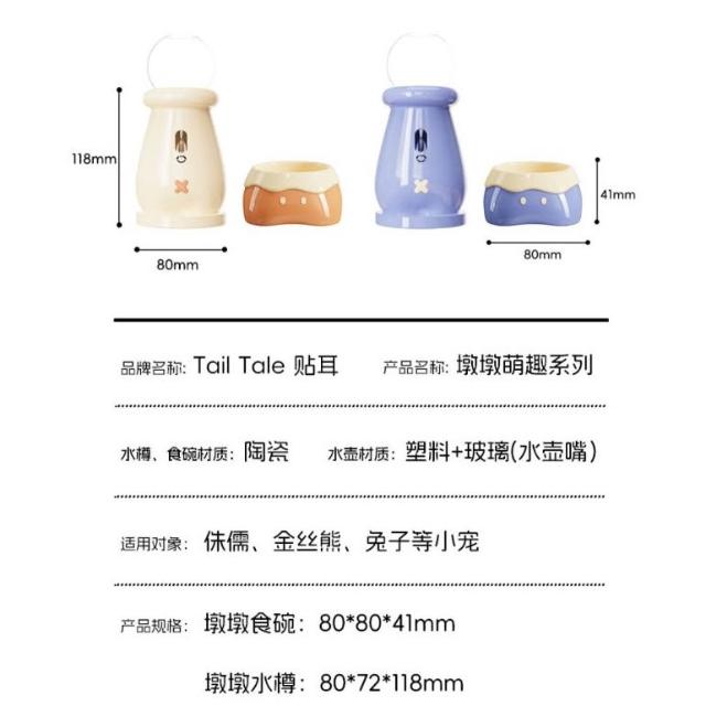 貼耳 墩墩陶瓷水壺/食盆 🧡 陶瓷防翻 附靜音真空水壺 | 倉鼠造景 倉鼠水壺 倉鼠飲水器 倉鼠食盆