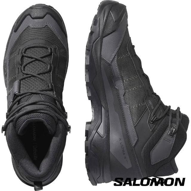 salomon所羅門 男 X ULTRA 5 Goretex 防水中筒登山鞋 寬楦 黑/瀝灰/堡岩灰 L47755400 綠野山房
